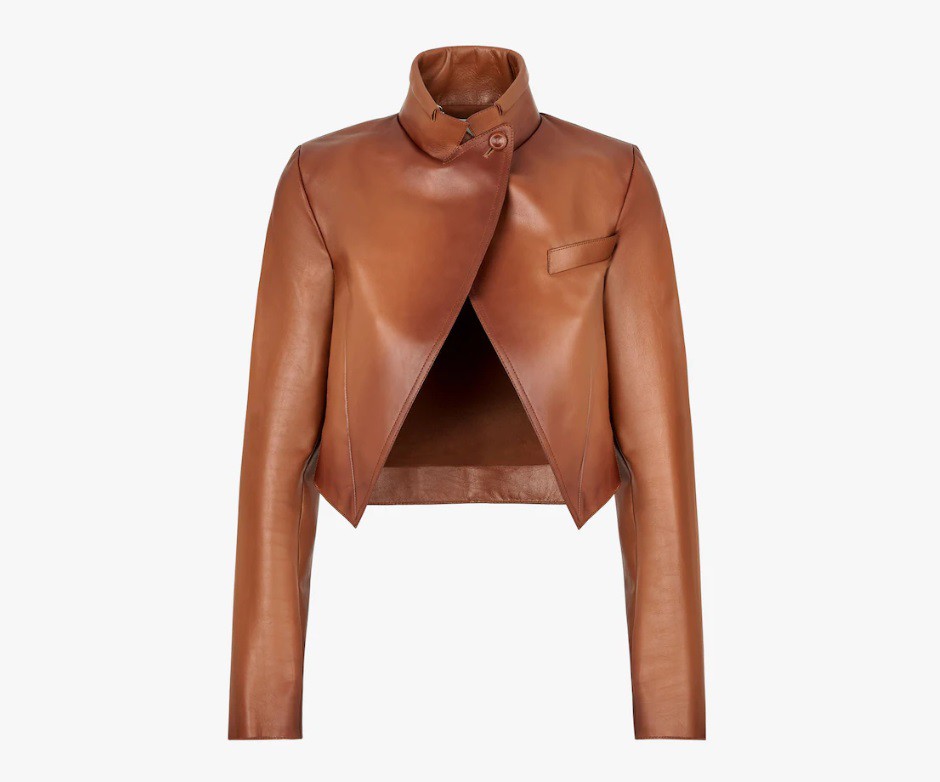 Composicão: 100%pele de bezerro, forro:100%seda, nr10botões:madrepérola
