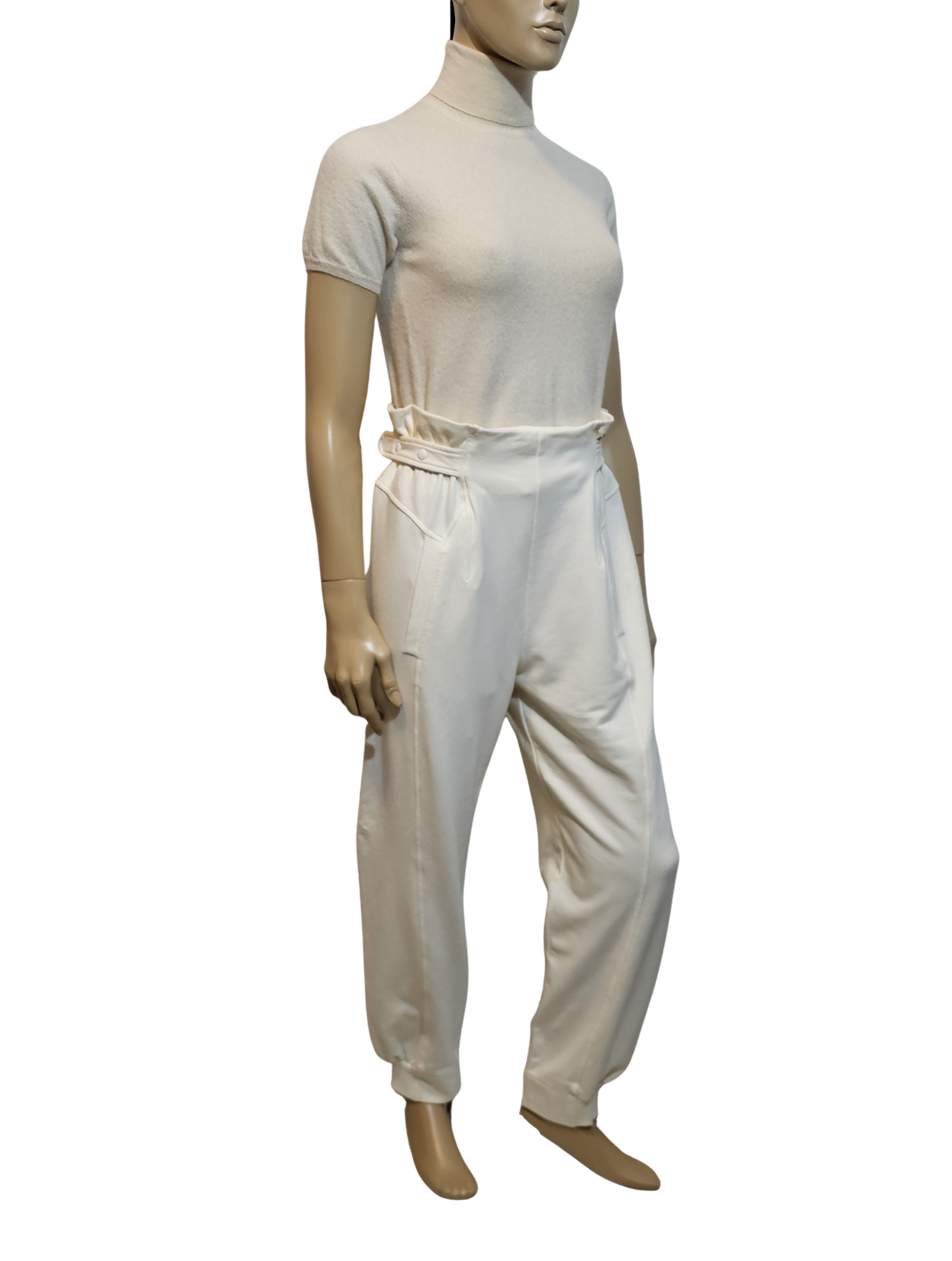Alberta Ferreti calça em moletinho off white, modelo com regulagem laterais na cintura