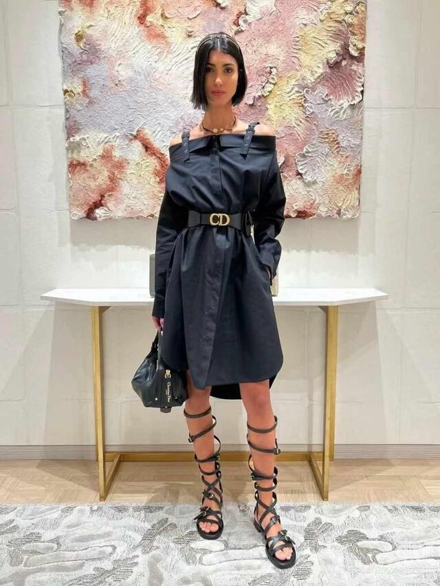 Vestido chemise Christian Dior em tom preto com cinto para ajuste.