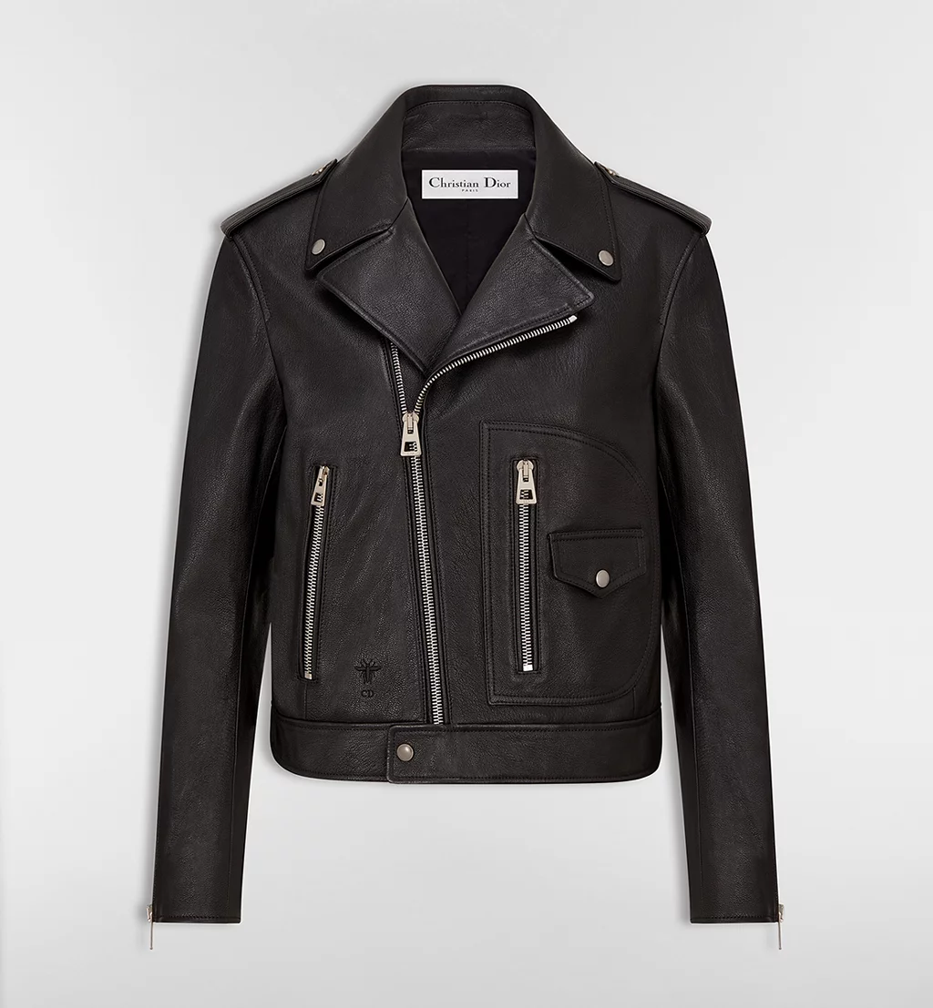 A jaqueta biker preta é uma peça atemporal. Confeccionada em pele de cabra maleável, ela traz um corte ajustado com diversos zíperes e gola notched com botões de pressão. Com ombreiras com aba, fechamento assimétrico frontal com zíper, dois bolsos com zíper e um bolso pequeno com botão de pressão, a jaqueta biker realça qualquer look o ano todo.