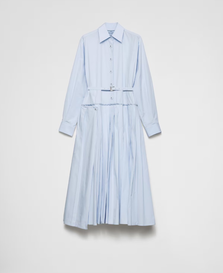 A sofisticação contemporânea deste vestido, construído com elementos originais e detalhes emblemáticos, cria uma silhueta refinada e feminina. A saia plissada adiciona movimento ao vestido, complementada por um cinto fino de tecido combinando.